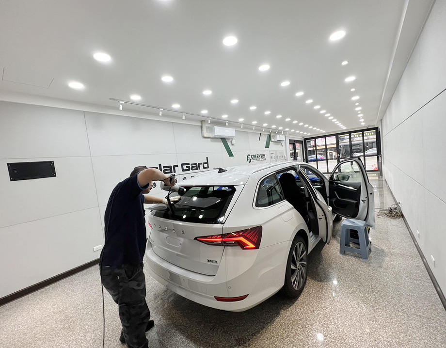 先為您的愛車內外做好全套的保護措施,確保在施工的任何過程都不會傷到您的愛車,且堅持在霧化除塵室中做到最完美的施工,前後檔一片貼更是我們對車主的保證!